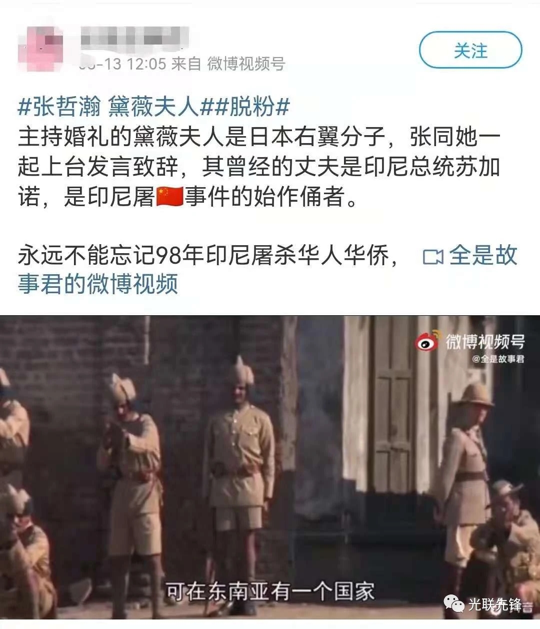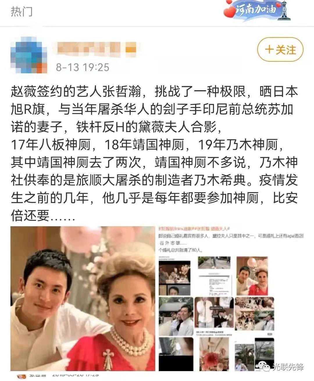 毫无疑问,无论在靖国神社前合影,还是到乃木神社参加婚礼,张哲瀚毫无疑问触碰的是受日本帝国主义侵略和压迫的人民心中难以愈合的历史伤痕,这是绝对没有洗地的空间的。但是,随着时间推移,部分人的矛头却开始指向印尼前总统苏加诺,因为,与张哲瀚合影的黛薇夫人,正是苏加诺的妻子。随后,苏加诺的形象开始变成“暴君”“刽子手”“印尼排华的始作俑者”